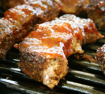 3. Start your grill. You’re going to want to cook the ribs low and slow, so keep the coals or burner lit on one end of your grill and you will cook the ribs on the other end of the grill. Unwrap the ribs and place them on the side of your grill with no heat. Close the grill and cook for about 1-2 hours, depending on a lot of factors (grill size, heat, size of slab, oh boy). Basically you’re looking for a good amount of color on the ribs (the brown sugar will caramelize a bit) and some slight char. Serve as they are, or with your favorite barbecue sauce.