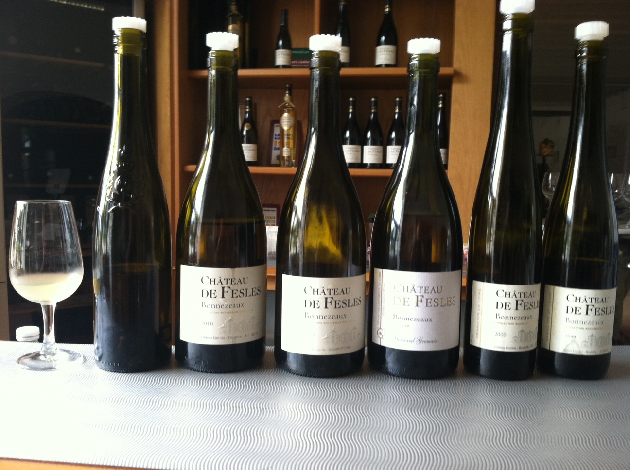 Chateau Fesles Bonnezeaux from 1999 to barrel sample of 2013As you can imagine the sugar, as well as the previously discussed inherent acidity of Chenin Blanc, acts as preservatives which allow this wine to age for decades. I was fortunate enough to experience this for myself as Gilles had me sample Chateau Fesles’ Bonnezeaux from 1999 to a tank sample of their 2013 vintage which had just been blended together in stainless steel tanks one week ago.