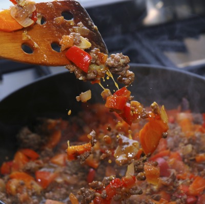 Raw eggs were stored above vegetables in the 2 door refrigerator. Raw animal foods must be separated from raw ready-to-eat food such as vegetables during storage. Containers of food such as cooked beef and sliced tomatoes were observed in the refrigerators without protective barriers.