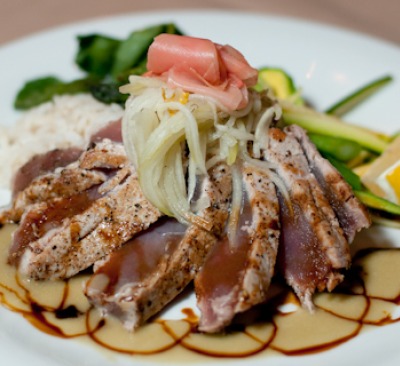 Wood-Grilled Swordfish | Seafood Linguine | Oven Roasted Deboned Half Chicken | Jerk Marinated Tenderloin of Pork | Plat du Jour