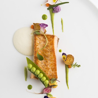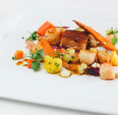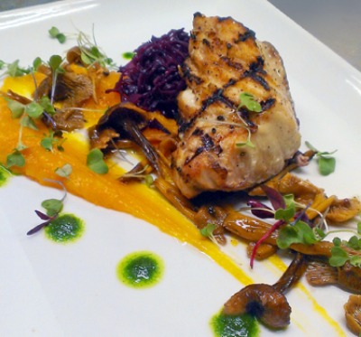 Roasted pork tenderloin with a pork, apple and fennel raviolo, root vegetable purée, light pork jus | Mediterranean sea bass with native fennel, potato gnocchi, radishes and kohlrabi, creamy sea emulsion | Rhode Island beef braised in Burgundy wine with fingerling potatoes, pearl onions and mushrooms
