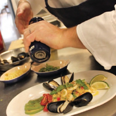 Lobster Tail Fra Diavolo on Linguini served with Caesar Salad side | Wild Boar “Osso Bucco” with Carnaroli Rice | Rack of Lamb with Vaucluse Sauce | Sautéed Free Range Chicken Breast with Fig & Almond Stuffing and Green Peppercorn Sauce