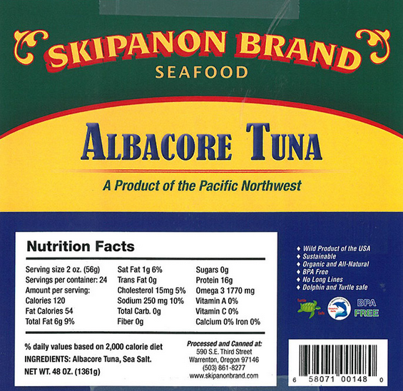 Canned Seafoods Recalled by Skipanon Brand and Garibaldi Cannery