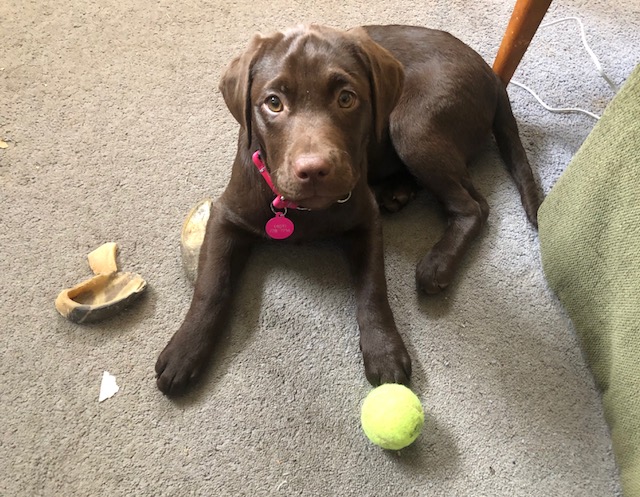 The author's newly-adopted puppy, MollyMy newly adopted three-month old chocolate lab, Molly, keeps me on my toes. Literally. My daily walks around the block and playing ball in the back yard equal over eight thousand steps calculated by my Fitbit App. Being a pet owner I can certainly vouch for research findings published over the years that indicate that older adults who also are pet owners benefit from the regular exercise and bonds they form with their companion animal.
