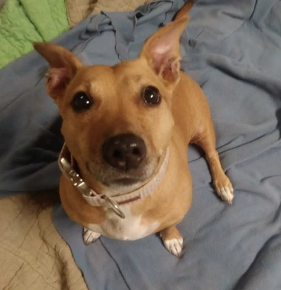 Meet Zoe! She small but mighty! Zoe has exhibited some fear of loud noises and kids - so it's best that she go home with teens and adults. She's a total snuggle bug and enjoys burrowing in her blankets. Zoe has walked with other large dogs here and could do well living with one. She has no history with cats. Zoe's skin has been a bit patchy, she is currently on medication her adopter should keep an eye on it.