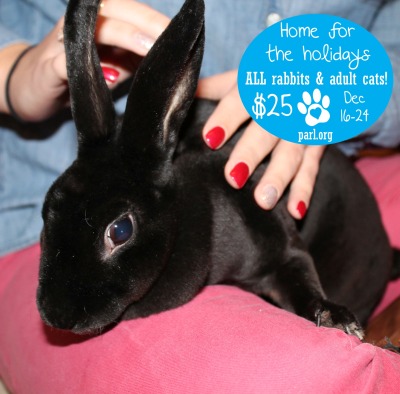 Providence Animal Rescue League will be reducing adoption fees on cats and rabbits to $25 until Christmas Eve in the hopes that they will all be home for the holidays!