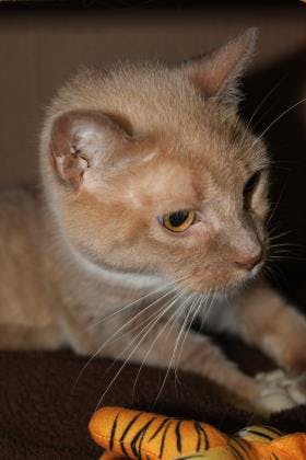 My name is Tony and I am an 11 year old male. I'm a mellow, friendly guy who just wants a family to love. My feline-ality is "MVP". I'm a savvy cat who knows the score. I'm pretty unflappable, too. I don't mind entertaining myself, but a human companion at the other end of the couch and a nice scratch behind the ears always make my day. If you're looking for a resourceful addition to your team, think about signing this Most Valuable Pussycat.