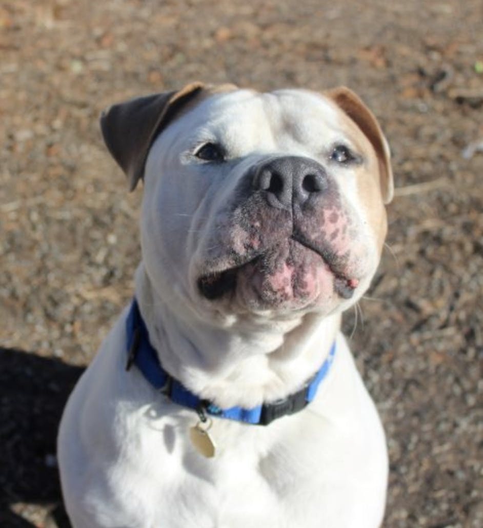 He is a 1.5 yr old, Large Mixed breed. As you can see, Blu is equal parts goofy and handsome! He is also super active and intelligent. His family should be ready to keep up with his exercise and training needs. Staff is currently working on basic obedience with Blu, particularly loose leash walking skills. Blu may do well with another large breed dog but no cats please. Teens and adults are best until Blu can perfect his manners. If you are interested in learning more, please come in and speak with us today!