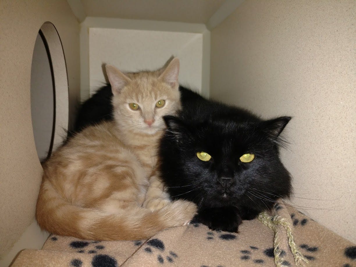 My name is Romeow and I am a 3 month old kitten looking for a home with my friend, Gigi. He's 6 years old so he's a bit older, but we've become two peas in a pod. Gigi went to a foster home because he was very nervous in the shelter, and was given his very own kitten (ME!!) to see if it would help him to come out of his shell. Well, now we're great friends and help each other feel more comfortable. We would love to go to a forever home together with a family that will understand our struggle with learning to trust humans and work proactively with us to help us gain confidence.
