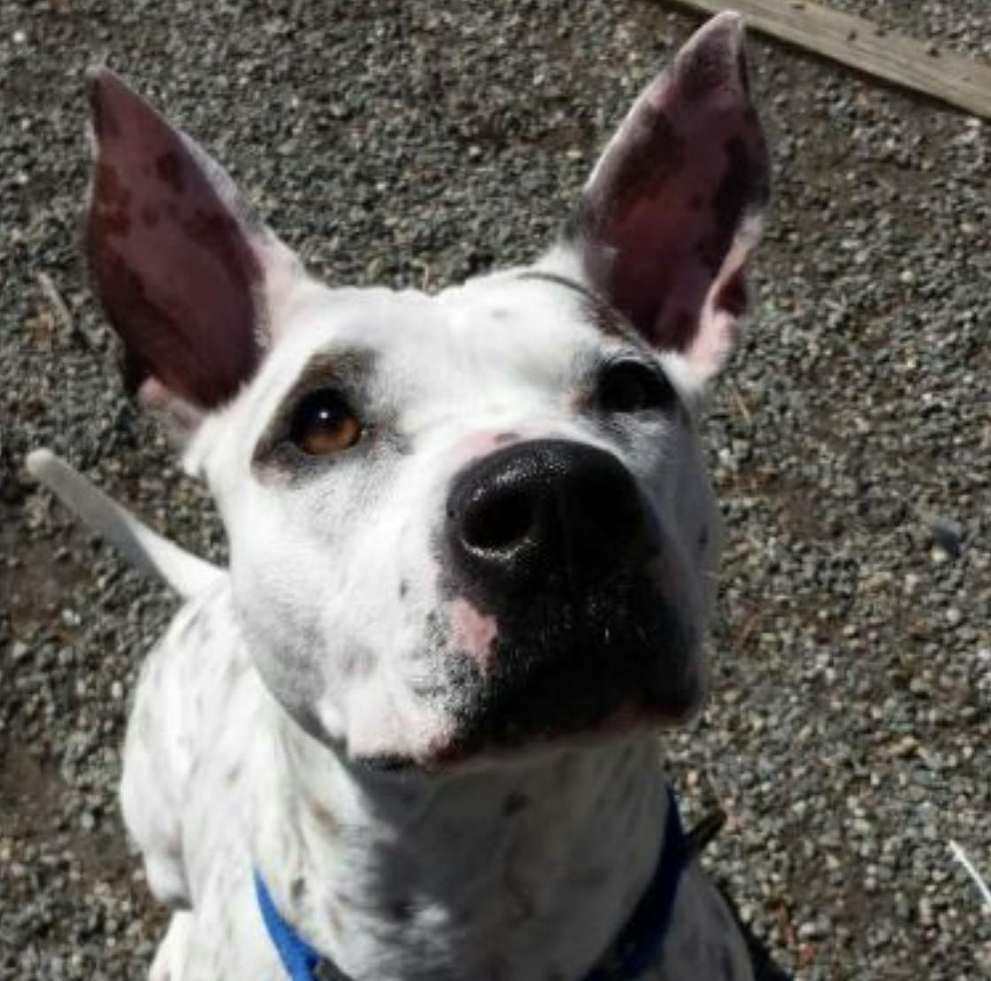 Meet, spotted-beauty, Stormi! Her personality is just as unique as her gorgeous coat. Her ideal family would enjoy outdoor activities so she can stretch her legs and get in a good play session. Stormi has a history with children - she does jump when excited and is a strong girl, so children without dog experience may be overwhelmed by her. Stormi is also looking for a home without other dogs or cats. Smitten with Ms. Storm? Come on in and meet her!