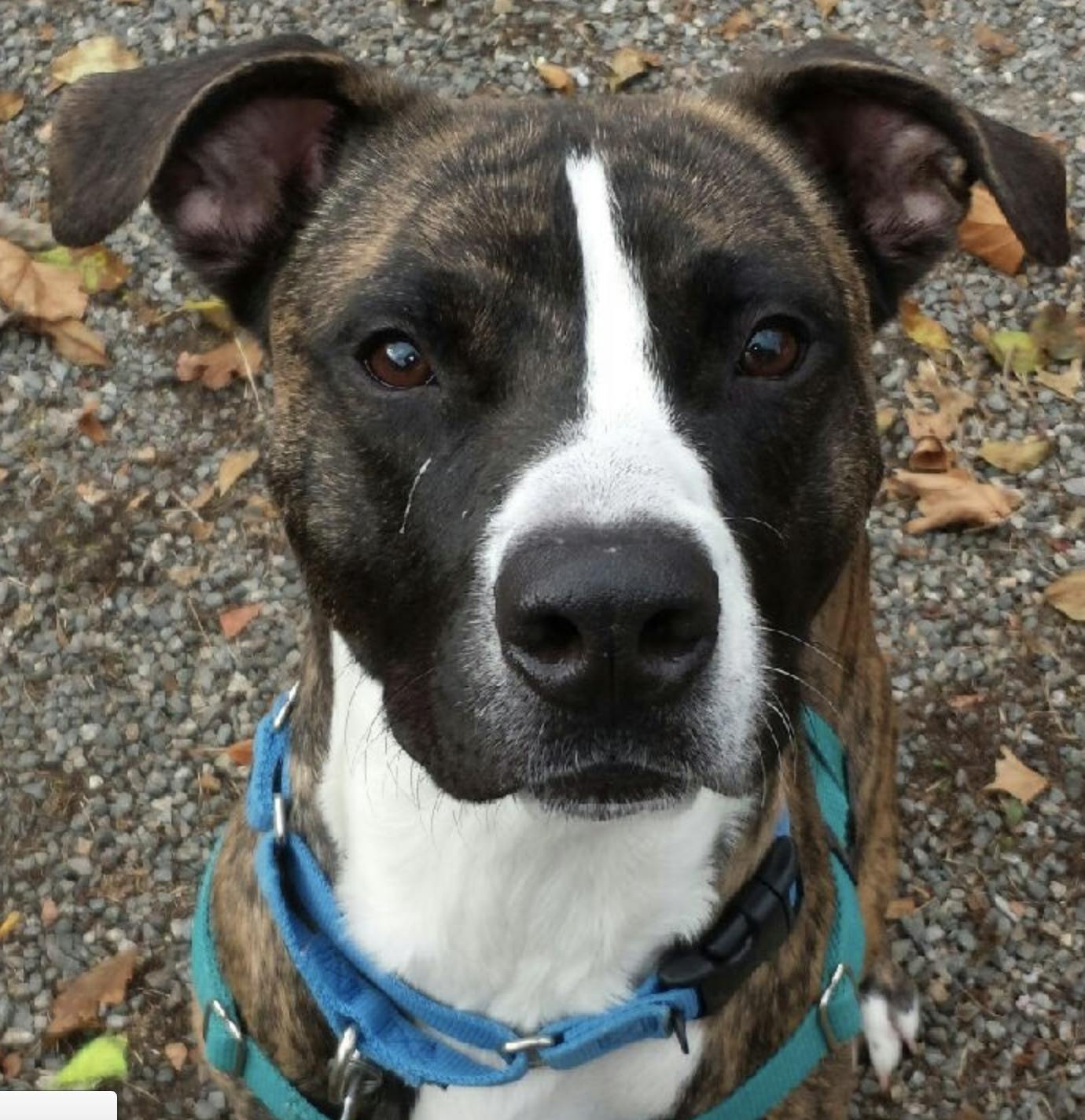 Chino is a sweet young boy. He is 11 months and would do best if he had another dog friend to help him get a little more socialized. He is super energetic and can be jumpy sometimes so older kids and adults are best for Chino. No cats as he does not have any history with them and he is a young and fast boy. Chino is working with staff on his basic obedience so he'll need someone comfortable with his puppy behavior and willing to work with him moving forward. He loves walks and would be a great hiking buddy!