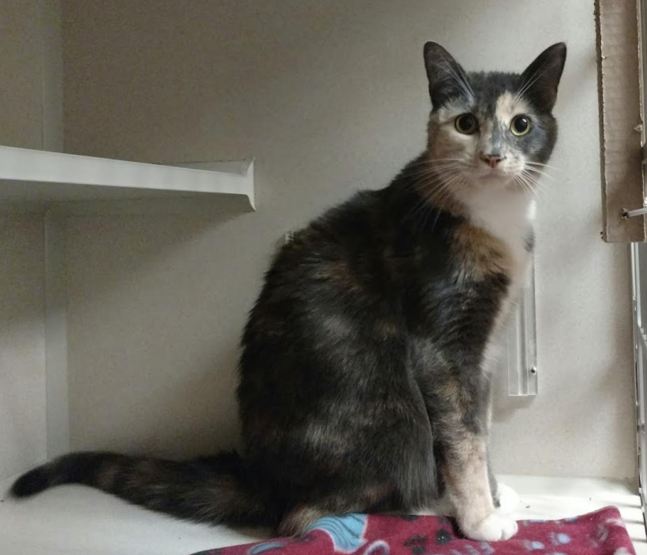 My name is Esmerelda and I am a 1 year old female. I am a social and active young lady. Looking for a fun addition to your home? I might be the one for you! My feline-ality is "Executive". I have to say, I'm a busy cat. First, I've got to check out what's happening out the window. Next, I'll see if any closets or cupboards need looking into. And then there are my naps ? can't be late for those. I can fit a little socializing into my schedule. Shall we plan on breakfast and dinner? I hope you like kibbles.