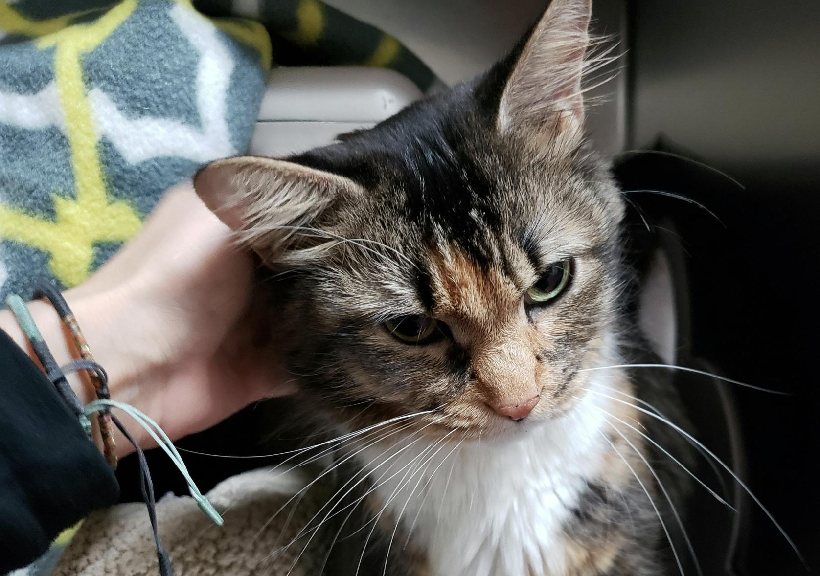 I'm Gracie! I'm a 7-year-old female cat looking for my forever home and person! I haven't lived with cats or dogs before but I'm pretty nervous around young children. My previous owner described me as a one-person cat, but with my friends at PARL, I've been a love bug. Do you seek affection? I do! If you also like petting, purrs, and paws kneading your lap, I think we might have a LOT in common. I'm looking for "someone who enjoys quiet times and togetherness." Could that someone be you?