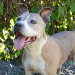 Here's Mia, a 1.5 year old sassy lady with personality for days. Mia is smart and eager to learn, so she will need a family that can devote a lot of time to training her properly as she settles in. We think Mia would do best in a home with no other animals, unless the dog can reciprocate her play style and tolerate her puppy antics. Although she LOVES kids, Mia does not realize how big she is...so we're recommending an adults only home for now. Mia is part of our LEAP fund, and will go home with some private training to make sure she gets started on the right foot. We think that Mia is a gem, don't you? Ask to meet her today.