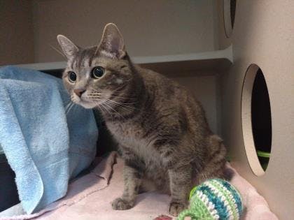 My name is Sneaky and I am an 8 year old female. I am a mellow older lady looking for somebody to appreciate my good looks and sweet personality. My feline-ality is "MVP". I'm a savvy cat who knows the score. I'm pretty unflappable, too. I don't mind entertaining myself, but a human companion at the other end of the couch and a nice scratch behind the ears always make my day. If you're looking for a resourceful addition to your team, think about signing this Most Valuable Pussycat.
