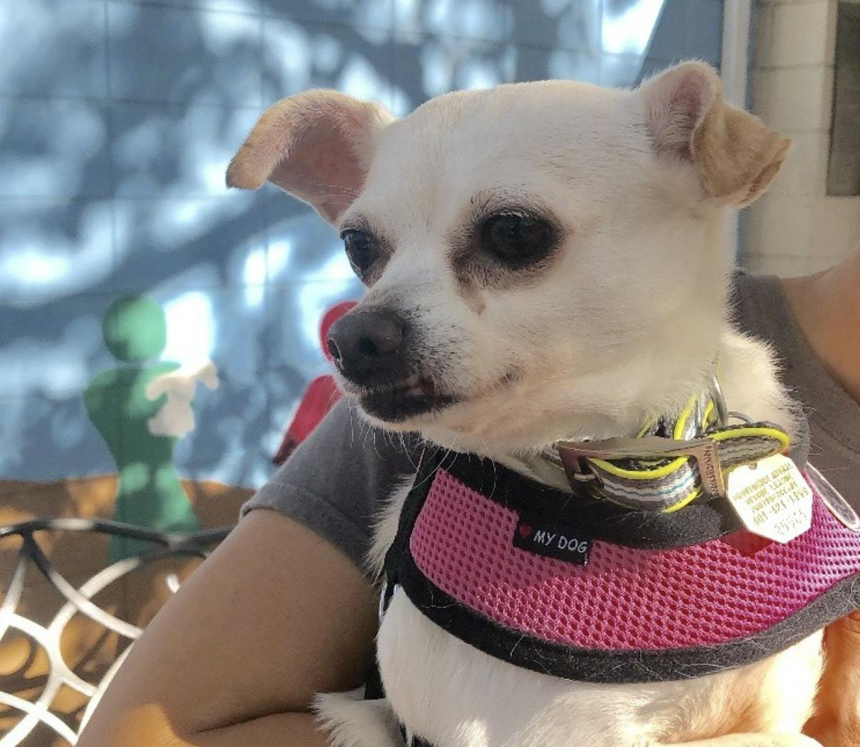 This spunky little Chi is around 8 years old. She is a sweet girl who enjoys cuddles on the couch, pets and walks. Miley has history of living in a home with another dog and would be able to go home with another small, calm dog. Cats are cool with Miley! Miley can be nervous around new people and sometimes will bark at people approaching her. Because of this Miley would do best in a home with a family that will go slow with her and let her warm up on her terms. A home with teens or adults would suit this lady best, due to her nervous temperament. Want to make this cutie a part of your family? Come meet her today!