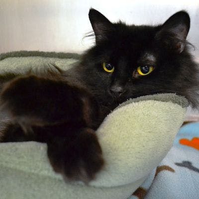 Hi, I'm Muffin, a 2-year-old female whose feline-ality is the Lovebug. Do you seek affection? I do! If you also like petting, purrs, and paws kneading your lap, I think we might have a LOT in common. I'm looking for someone who enjoys quiet times and togetherness. Could that someone be you?