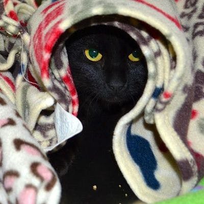 Hi, I'm Peaceman! I'm a 6-year-old male and my feline-ality is Party Animal. I'm a cat on a mission: PARTY! I love to play and explore and test my limits. I'd love to play with you, but I can make a toy out of anything: pencils, post-it notes, potatoes. If you're looking for some laughs and someone to liven up the party, think about inviting me.