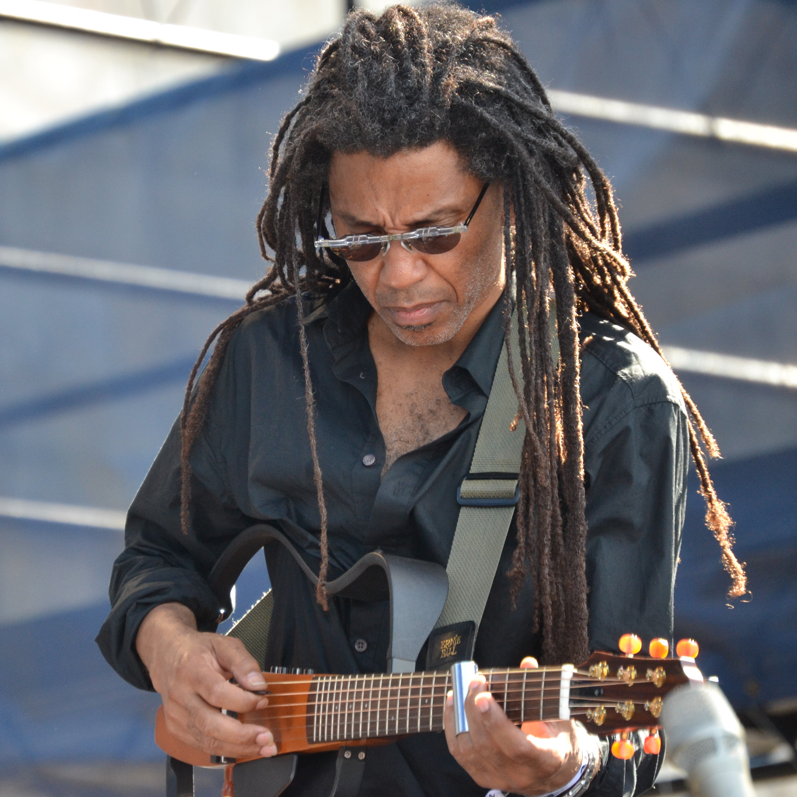 Brandon Ross, lead guitarist for Cassandra Wilson, has played with other jazz stars like Bill Frisell as well as mainstream artists including Joan Osborne. He had solos on several numbers including "With a Little Moonlight," and "All of Me." (Photo: Ken Abrams)