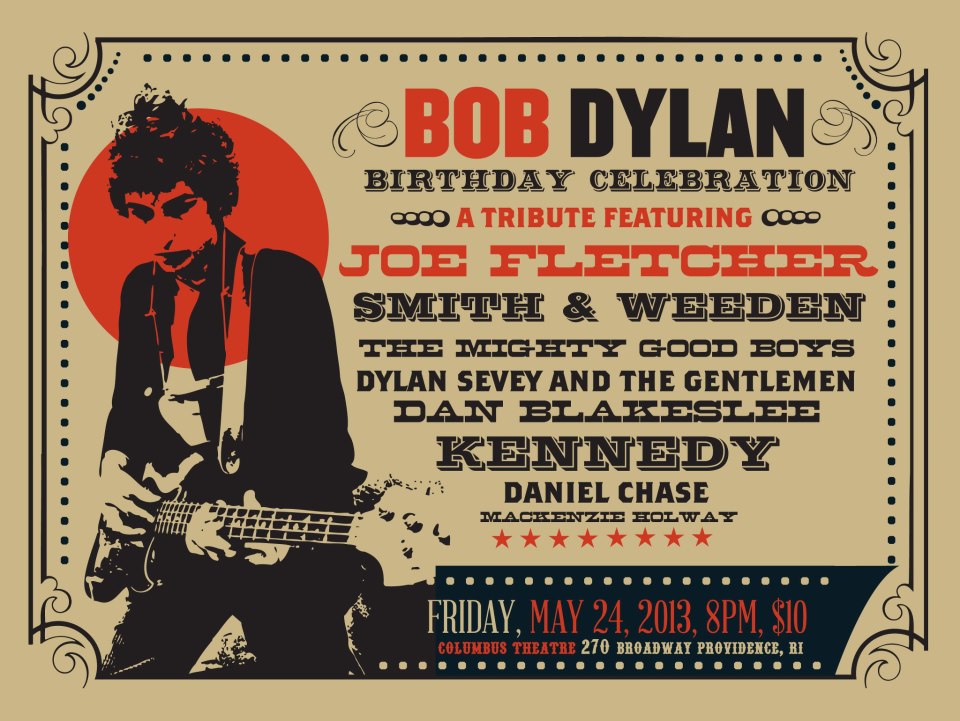 On Friday May 24, the Columbus Theatre has a Bob Dylan birthday tribute. Bob turns 72 today, and is currently preparing to headline the Americanarama tour this summer. Joe Fletcher, Smith and Weeden, and (of course), Dylan Sevey and the Gentlemen appear along with many others. A great night out in the newly renovated Columbus awaits. Note to Dylan fanatics – we revere the time-honored Patrick’s Pub event – but, Things Have Changed and The Times, well, They Are … OK, enough. Here’s a chance to support some rising artists and catch their take on Bob. Doors at 8:00 – only 10 bucks!