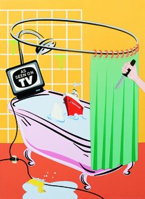 Chicken Little and the Culture of Fear is an ongoing project by artist Nancy Chunn. Six scenes from the series are installed in the Lower Farago Gallery at the museum. Inspired by the mania that occurred as a result of the 9/11 attack, Chunn focuses on exaggerated fears the public experiences as a result of media and often our own imaginations. The exhibit maybe two dimensional, but it is like walking into cartoon comprised of an iconography that is found all around us.