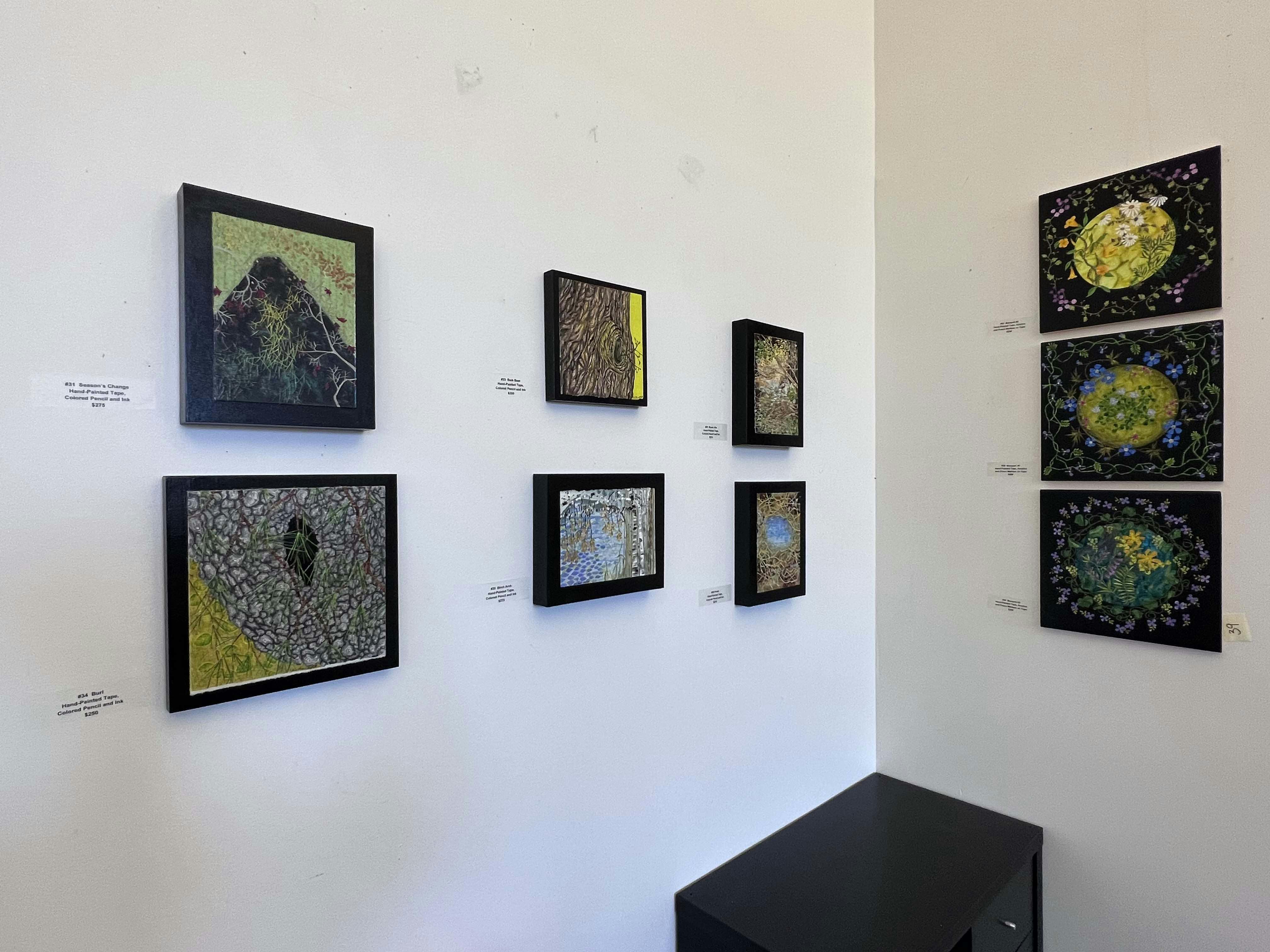 On view at Sprout, visitors will find a rich sampling of Gillett’s work that is representative of her active artistic practice. Although the pieces on view vary slightly, the through line evident in the all is an almost obsessive attention to detail. There are plenty of tidbits to look at and to explore. Gillett’s artworks are best experienced in person and reward viewers that take a moment to look closely. Experiencing them is akin to seeing the natural world through Gillett’s remarkably creative eye.