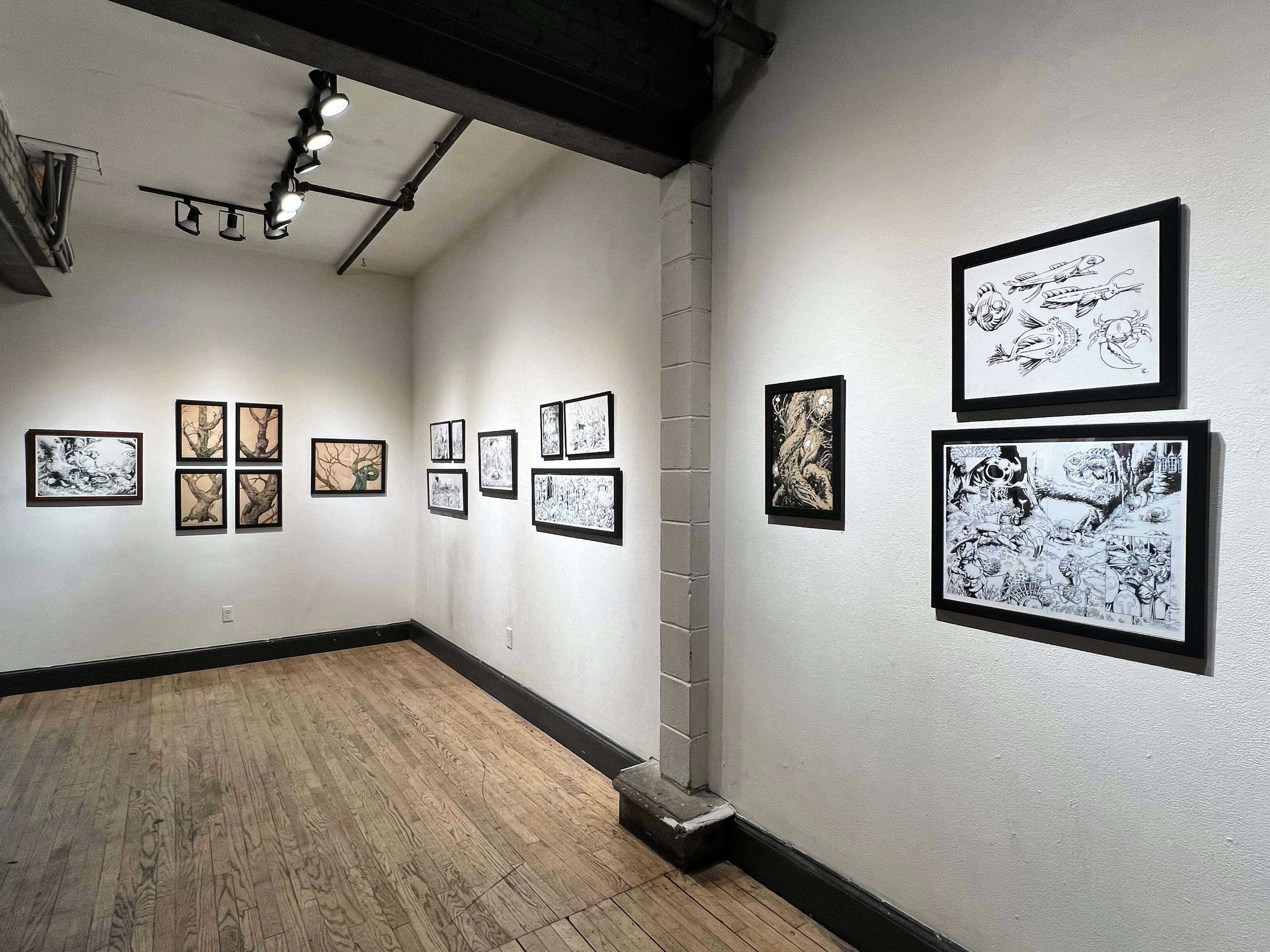 Pen and ink are foundational tools for many artists to shape their work. For Providence-based illustrator Conor Nolan, they are also some of the implements he uses to craft masterful drawings that describe space, narrative, and unique characters. He is currently the subject of an exhibition titled Sapling, on view in the Main Gallery at AS220 in downtown Providence through March 29. A talented maker whose work recalls the golden age of illustration, Conor Nolan is an artist to know.