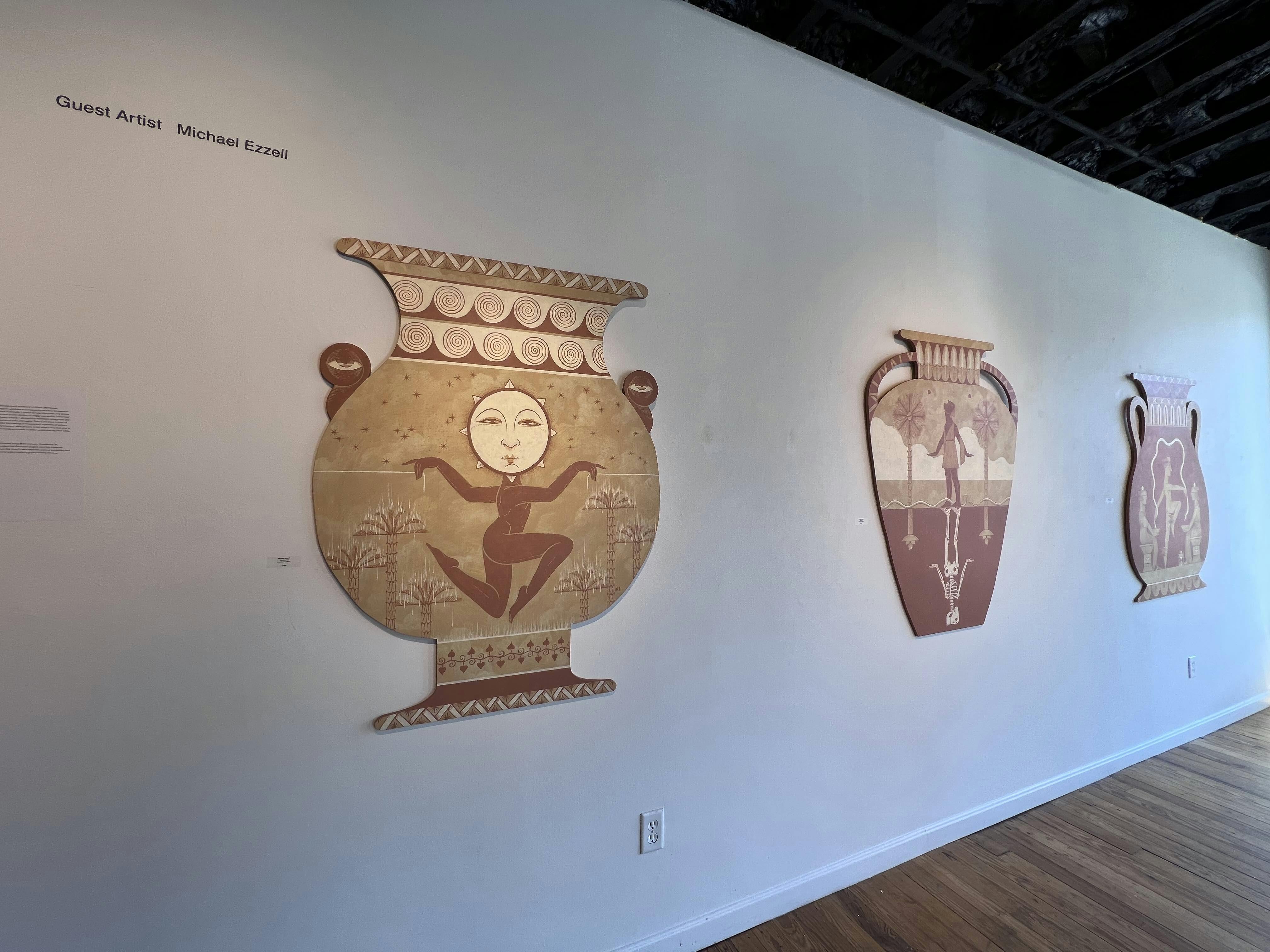 Through July 10, 2022, a sampling of Ezzell’s work is on view at Imago Gallery in Warren, where he is a guest artist. At the gallery, recent panel paintings shaped like amphorae recall the ancient tendency to tell stories on ceramics. Ezzell’s palette in the series is reminiscent of the type used on vase paintings that inspired him. The collection is remarkably inventive and unusual. Imago’s public hours are Thursdays 3-6 pm, Fridays and Saturdays 12 - 6 pm, and Sundays 12 - 4 pm.