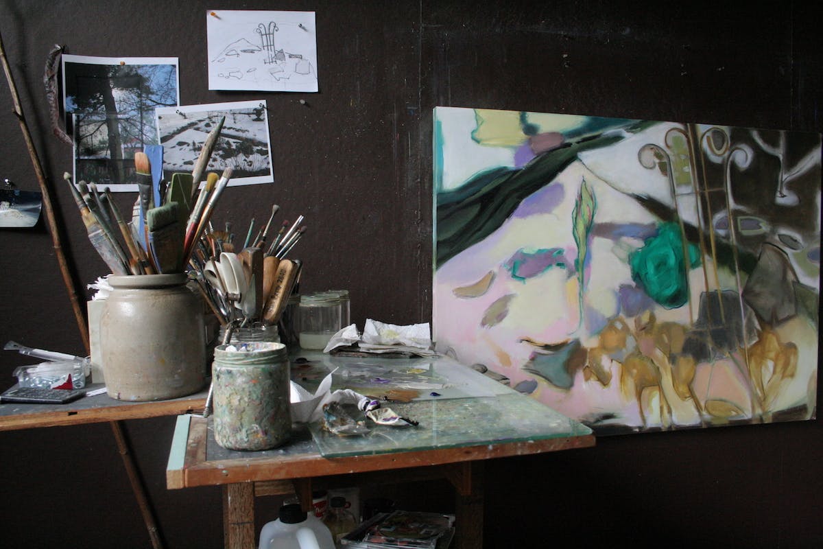 In the studio, Martiesian relishes in a rich collection of pigments. Her paintings, which often focus on the landscape of her own urban garden on the East Side, are also meditations on color. Speaking of the connection between her garden and her art, Martiesian says, “A garden reminds us we are not the only ones on this earth, but only a small piece of a much larger whole. A garden provides perspective, a return to the spirit and away from plastic gadgets. Painting is a different story. Here I am more than a bit player, more like a director or a conductor, mixing my impressions of the external world with my inward emotional response to life, a balancing act between the outward and inward worlds, translated somehow on a piece of 36x50 inch piece of linen.”