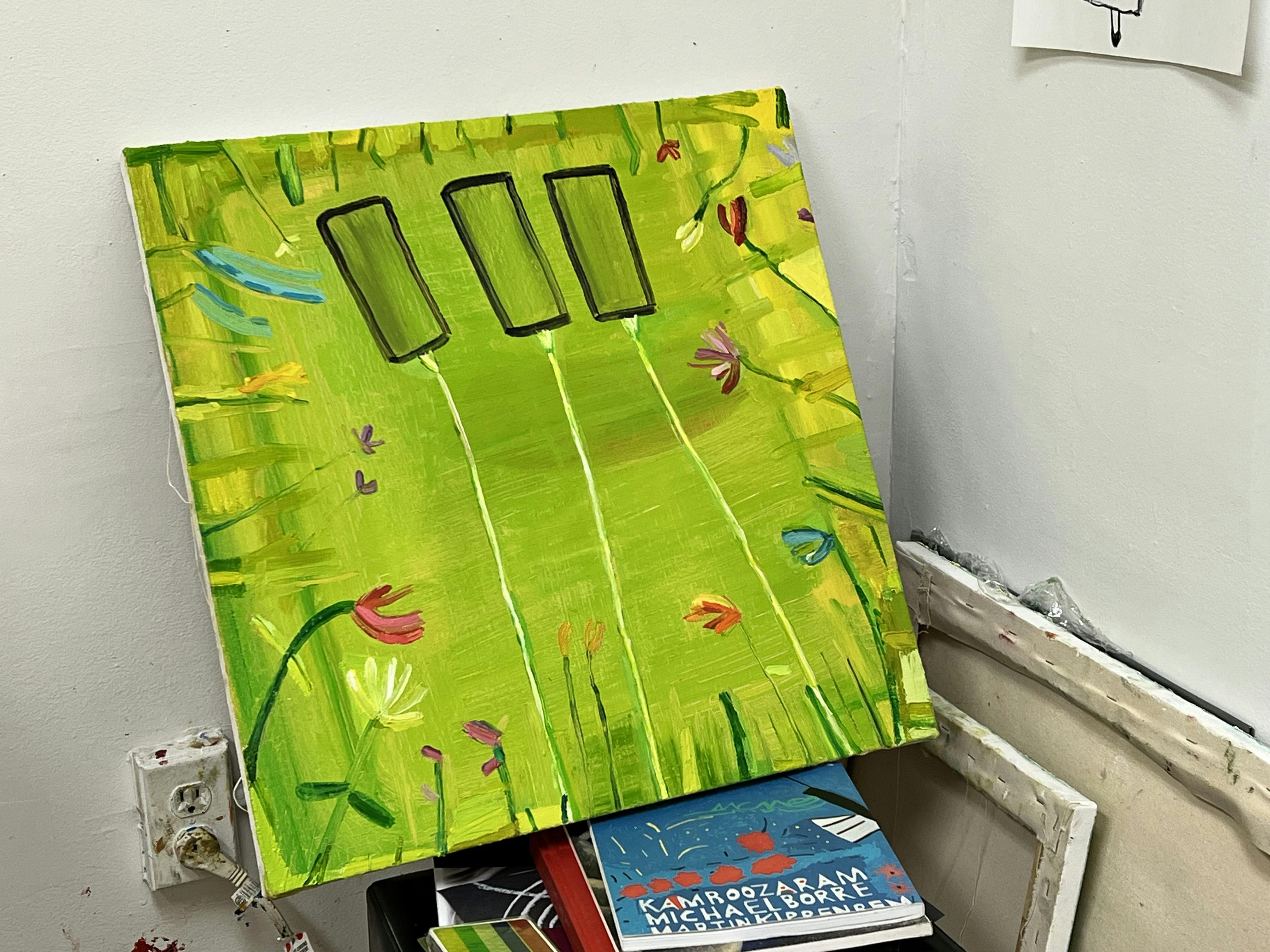 Considering her positive attachment to Warren, where she makes her paintings, DeAngelis describes the quality of working in a studio in the town by saying, “I love working in Warren. Just by wandering around the town, you will run into so much art, whether it’s painted along the sides of a building or placed in a window. The town encourages the arts and it is very welcoming, two things that are really important to me.”