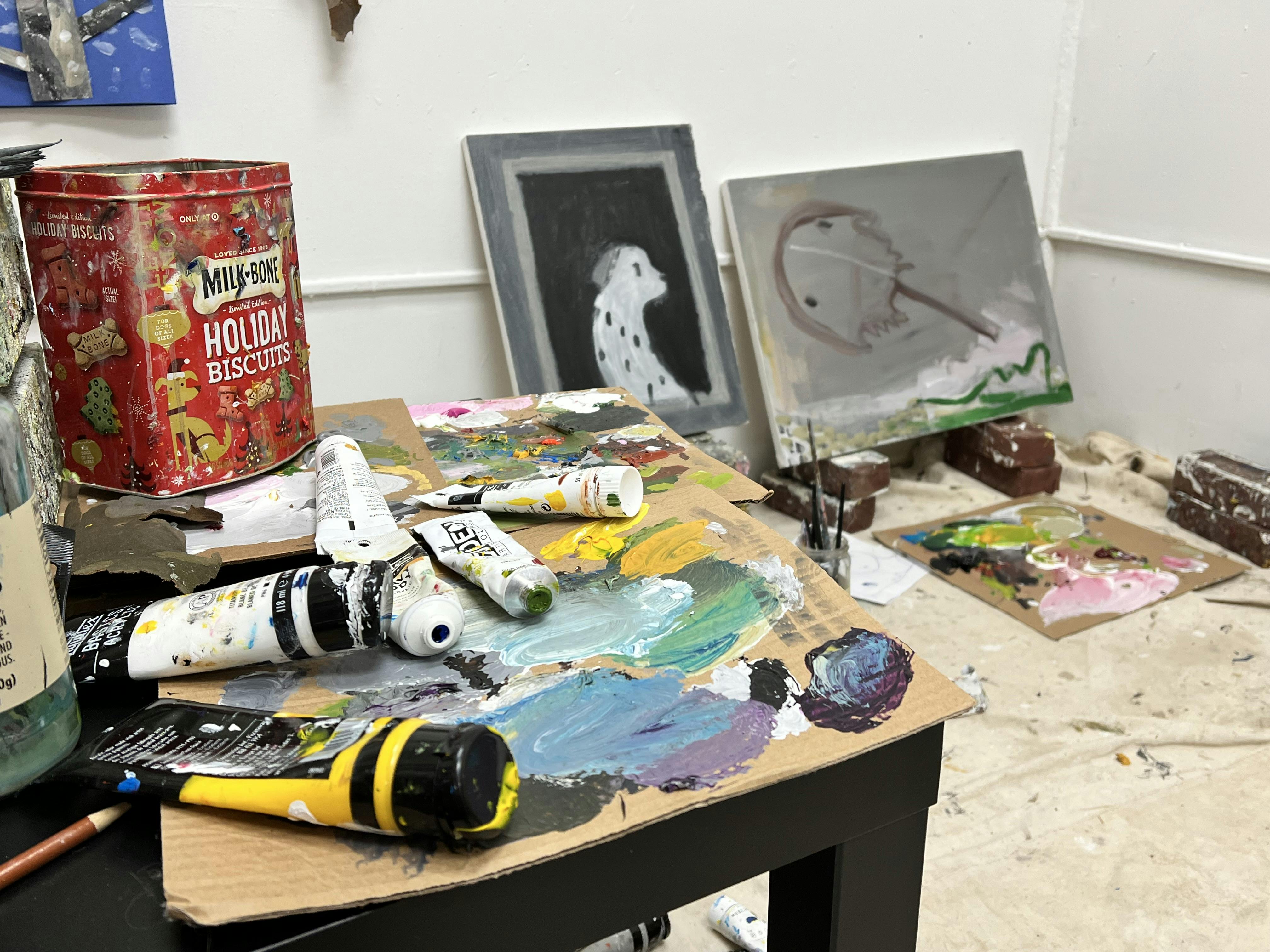 DeAngelis pairs her active studio practice with a job as an art teacher, instructing students aged 4-6. She describes working with children as “blissful” and says that the kids she teaches make her appreciate intuitiveness in art-making. She is also on the staff of the RISD Museum, where she can be found monitoring the galleries.
