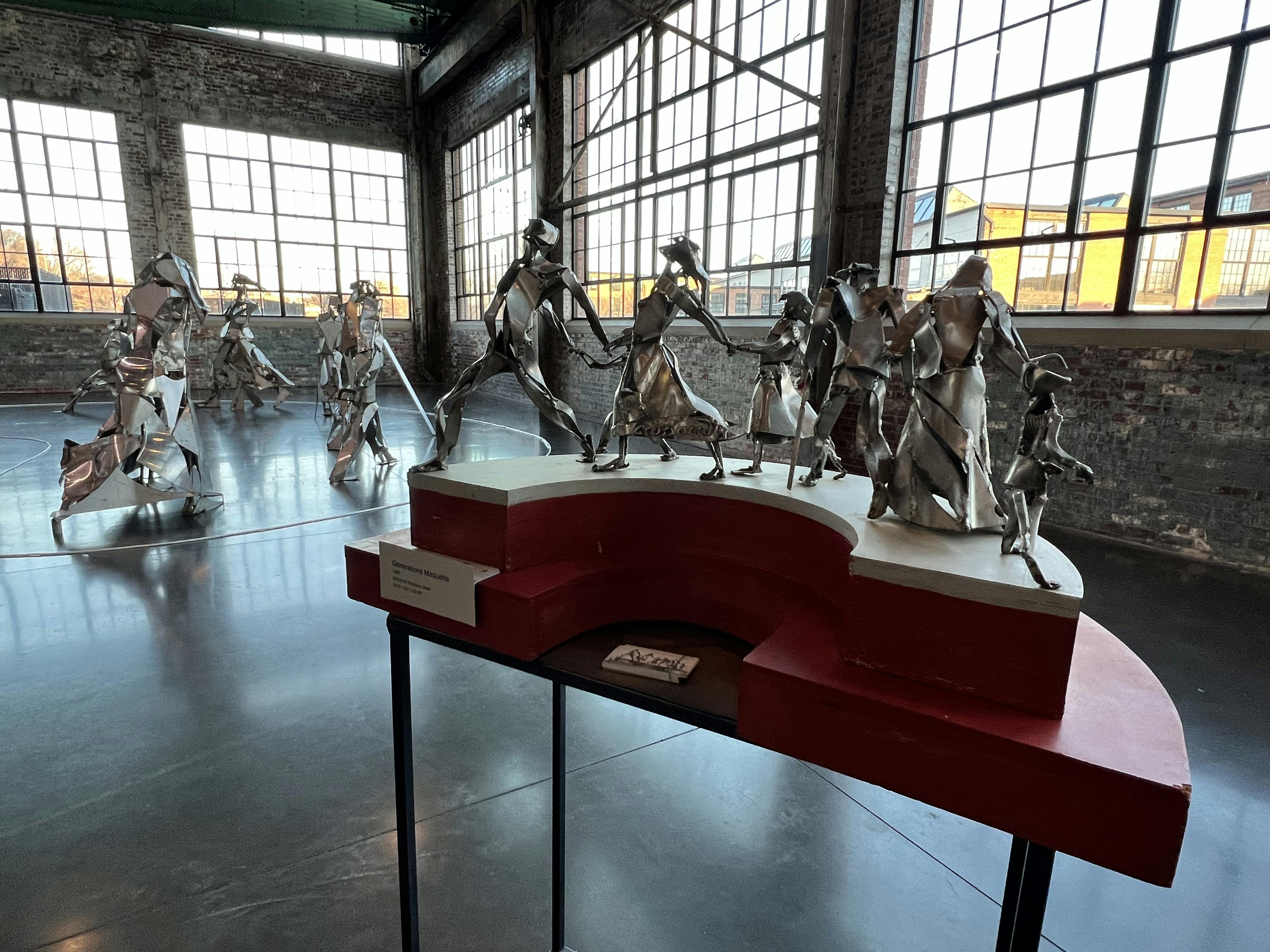 Ccopacatty’s murals are almost cinematic in their scope. Visitors have to look up to appreciate them. They are immersive and thought-provoking. Alongside these pieces, a collection of larger-than-life-sized metal sculptures of human forms and an accompanying maquette is also on display. These add depth and interest to the solo show and allow visitors to see a different skillset of the muralist, one that requires a torch rather than a brush.