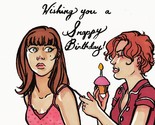 Most cards feature some sort of cheerfully pain-inducing prank – Slappy Birthday, Spanks for Everything. In one card a girl approaches her friend with a cupcake, ready to snap her bra-strap under the title “Wishing you a Snappy Birthday!” A little violence, in the best of sentiments.