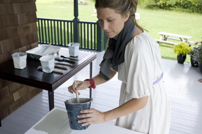 Starting out styling friends who could not seem to find the perfect outfit, Brierley honed her skills and spent many a long night with her trusty Bernina sewing machines. Now she works with several seamstresses, ones who have years upon years of experience, to handle her precious fabrics that she dyes by hand at her renovated farmhouse in Jamestown, RI.