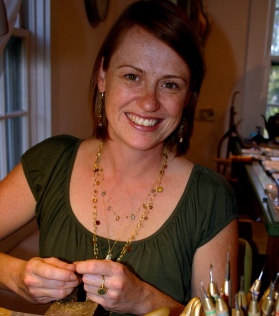 "The thrill for me is to see how it makes a woman feel. The jewelry can make one feel beautiful, confident and special. We love to help you find just the right piece, we try many until it 'sings' on the wearer. The beauty of making it all myself is that each piece can be tailored to the customer's needs. Everyone needs a different size, and I can adjust it for the perfect fit."