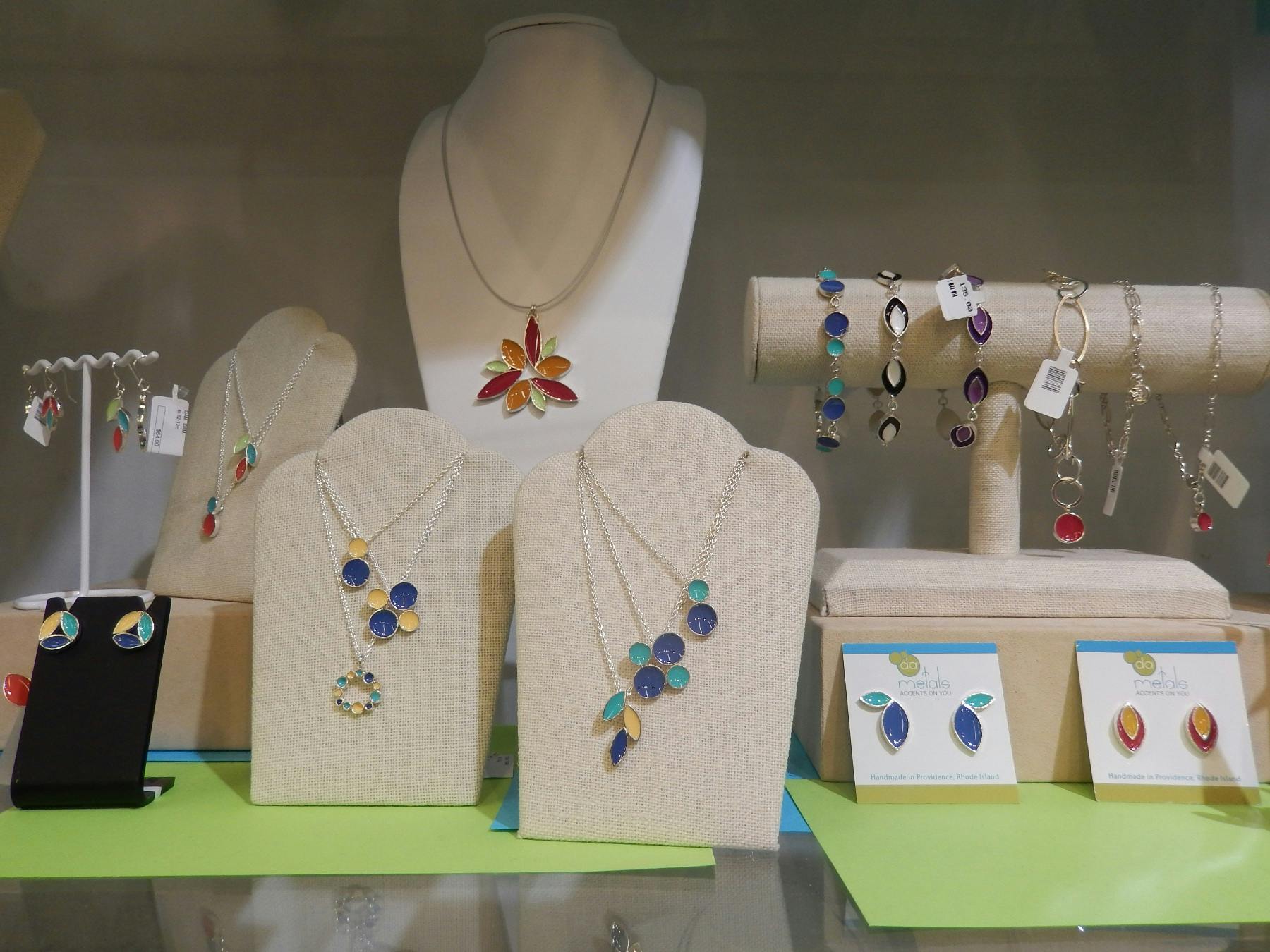 Both kids and adults will love the fun jewelry collection from DA Metals made by RISD grad Devienna Anggraini at her studio in Pawtucket. She creates everything from colorful stackable rings and clever state pride pins to elegant tassle earrings.