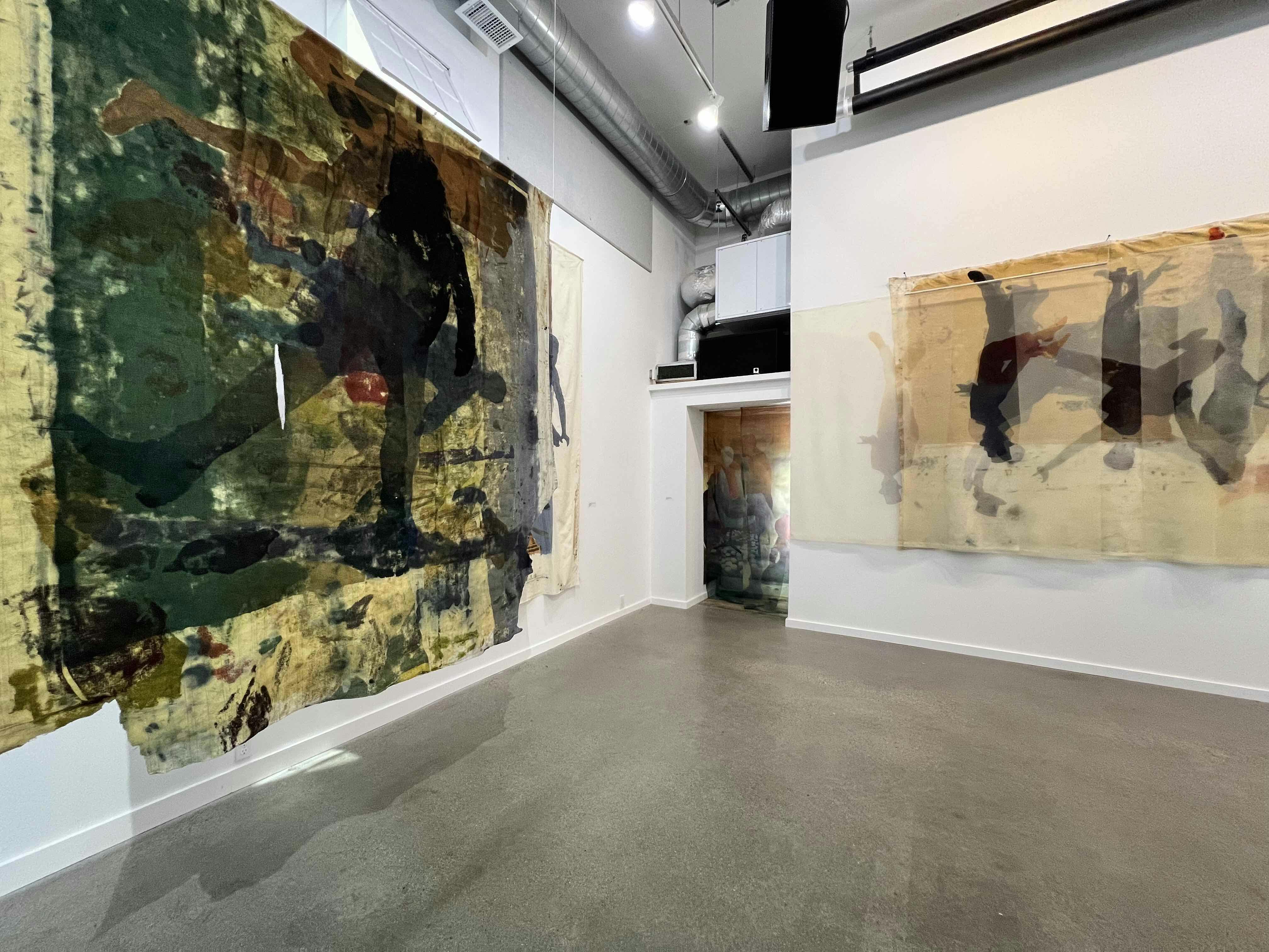 Titled “Dropcloths: Tales of a Process,” Baronas’ show features an array of textiles created between 1983 and 2023. The show charts the productive decades-long career of a singular artist and shows off the remarkable effect of works created on and with cloth. Primarily focused on figures and work, the towering pieces in the exhibition have the effect of tapestries that aim to capture and share histories. An immersive installation brings viewers close to Baronas’ art, inviting a walk through artistic creation.