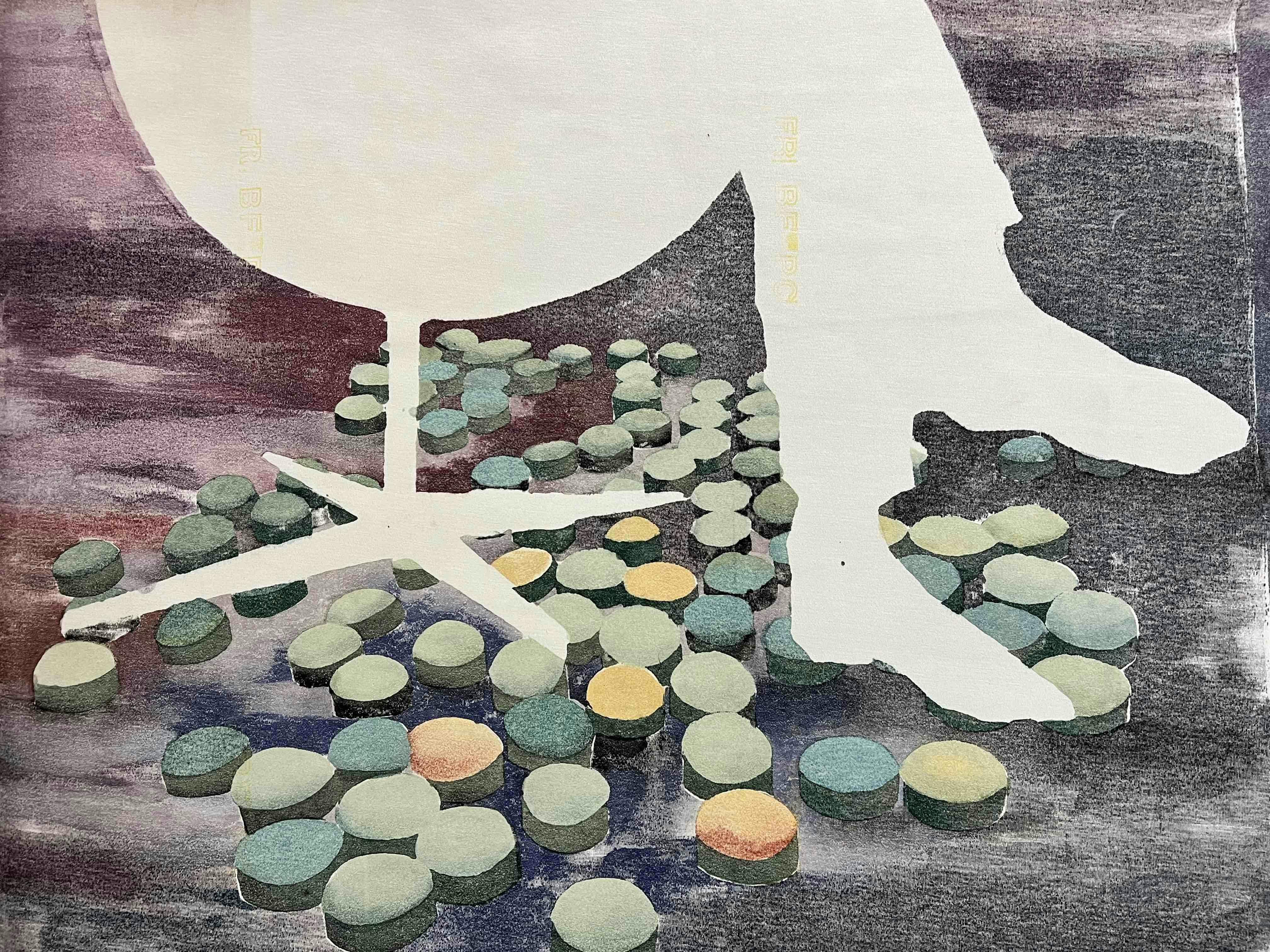 Experience is a central element of the work Baronas is sharing. In her textiles, she documents the experience of laborers in various industries and focuses on bodies as the hallmark of that labor. These figures are presented as silhouettes, often against the backdrop of expressive and abstractly dyed and painted substrates. Although the work on view spans 40 years, it is impressively cohesive in style and technique.