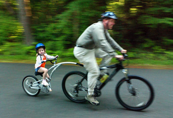 Plan to tune up the bikes this weekend. Check that your children's bike still fits or merely needs the training wheels off or seat adjusted. Make sure their helmet still fits properly. Check that reflectors, horns, and water