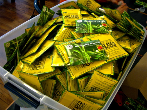 An initiative of Farm Fresh Rhode Island, One Seed Rhode Island aims to rally the community around a single symbolic vegetable to celebrate local agriculture and fresh food. Through the act of growing a vegetable alongside neighbors and friends, consumers become producers and gain a deeper appreciation for how their food is produced. During this first year of the project, the community voted for Provider bush beans as Rhode Island’s 2011 One Seed. The beans have arrived and are being packed, with distribution beginning now at the Springtime Farmers Markets in Pawtucket. In total, 10,000 free seed packets will find new homes.