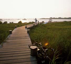 Owned and operated by the town of Barrington, the 42-acre Osamequin Wildlife Sanctuary, left, offers woodlands, fields and saltwater wetlands, with a well-defined trail system leading to the shores of Hundred Acre Cove and bordering wetlands. These two to three miles of trails that wind through the sanctuary makes this an ideal place for observing migratory waterfowl and shore birds. Open year round, from sunrise to sunset. Off the Wampanoag Trail, Rte. 114, Barrington.