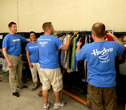 Hasbro, through its Team Hasbro program, gives employees four hours of paid time off each month to volunteer with organizations that serve children. In light of the tornado disaster, this benefit was extended to a full workday to allow Rhode Island employees help their neighbors in Massachusetts recover.