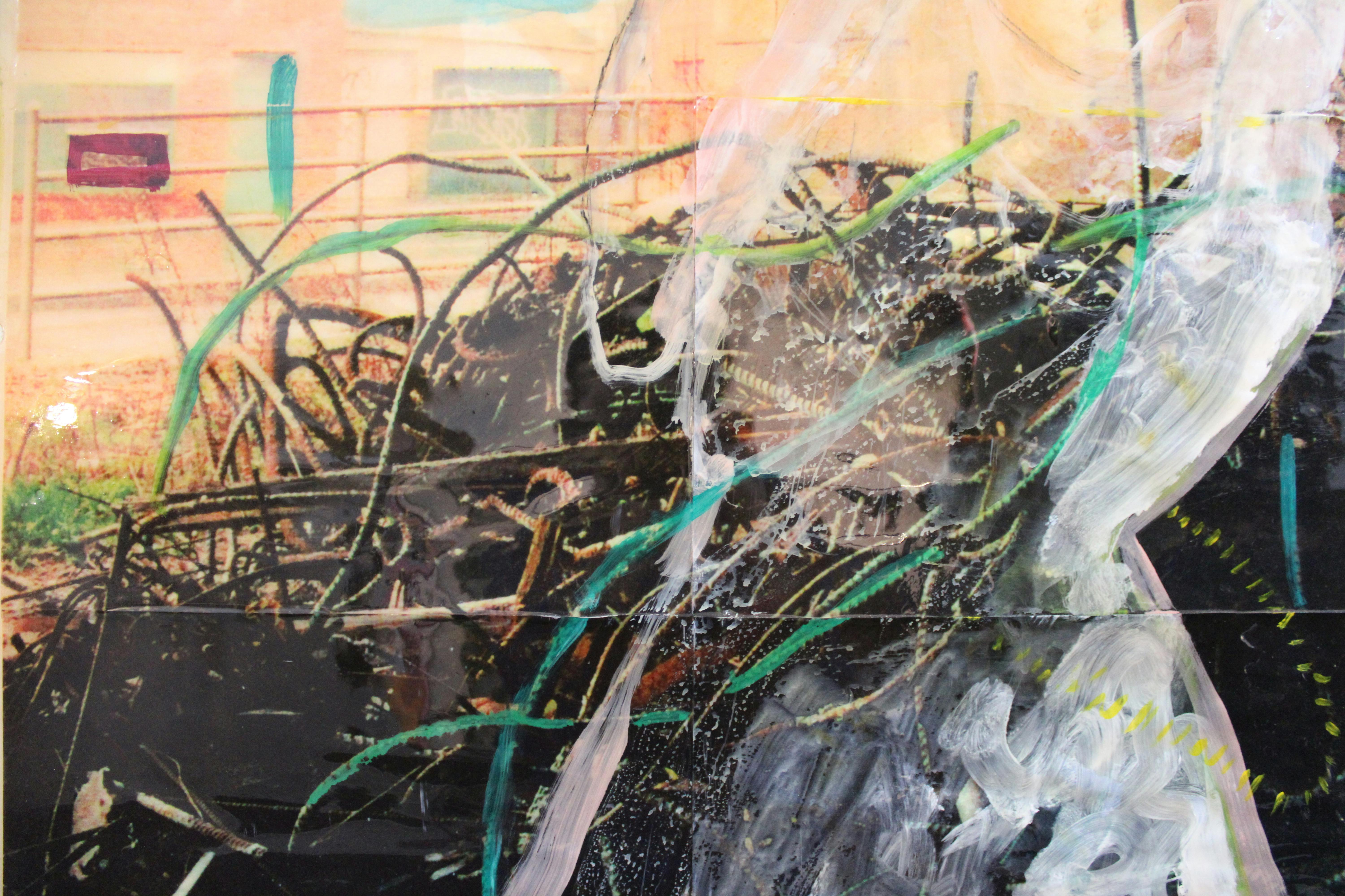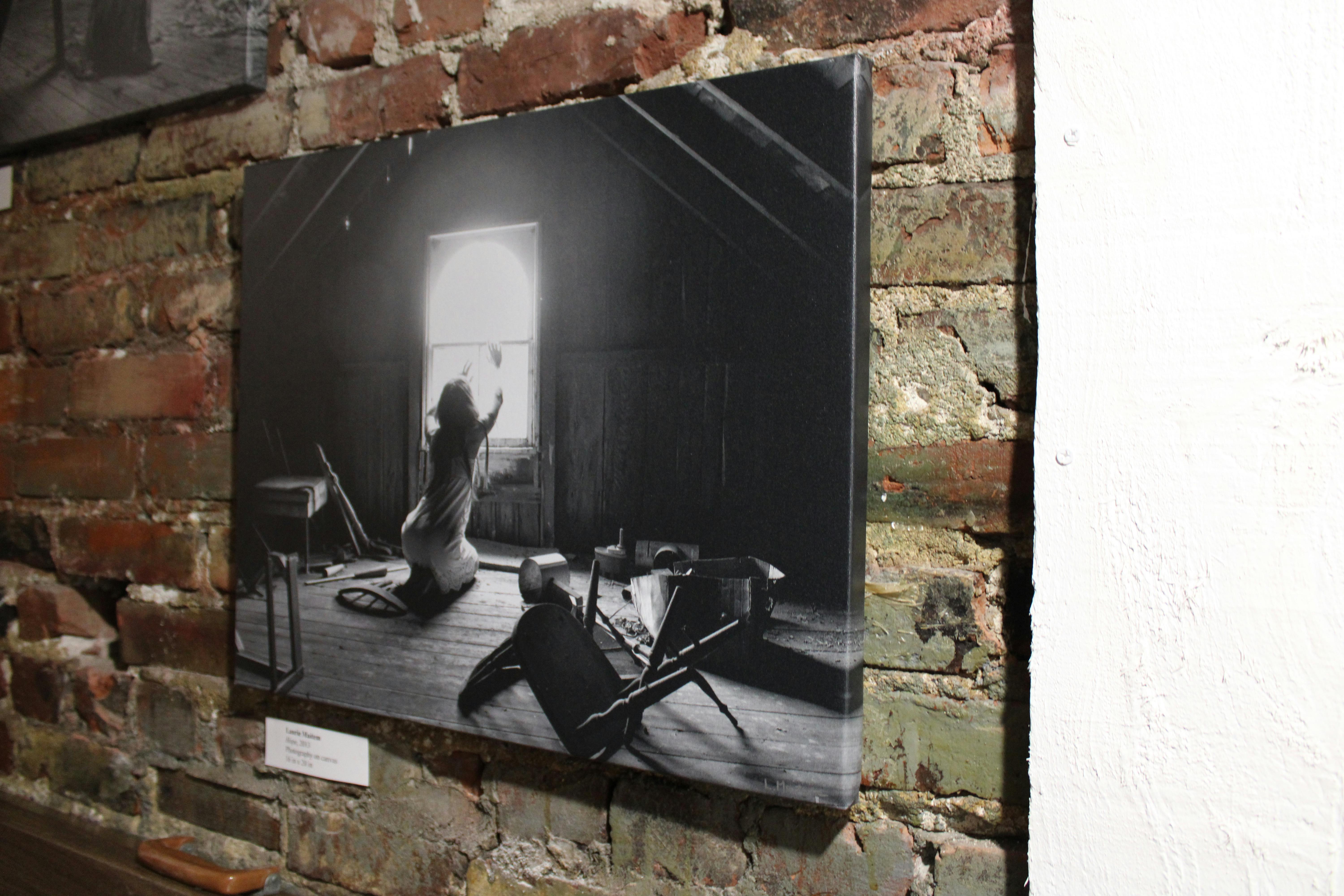Located at Two Monument Square, just across the street from the boldfaced neon marquee of Woonsocket’s Stadium Theatre, Monument Square Arts is housed in a modest storefront space that features an interior full of character and history. High tin ceilings are contrasted subtly against fresh, white wainscotting. On the walls, Celona is currently featuring a mix of pieces, including some of her own richly layered paintings as well as evocative photographs by Laurie Maitem.