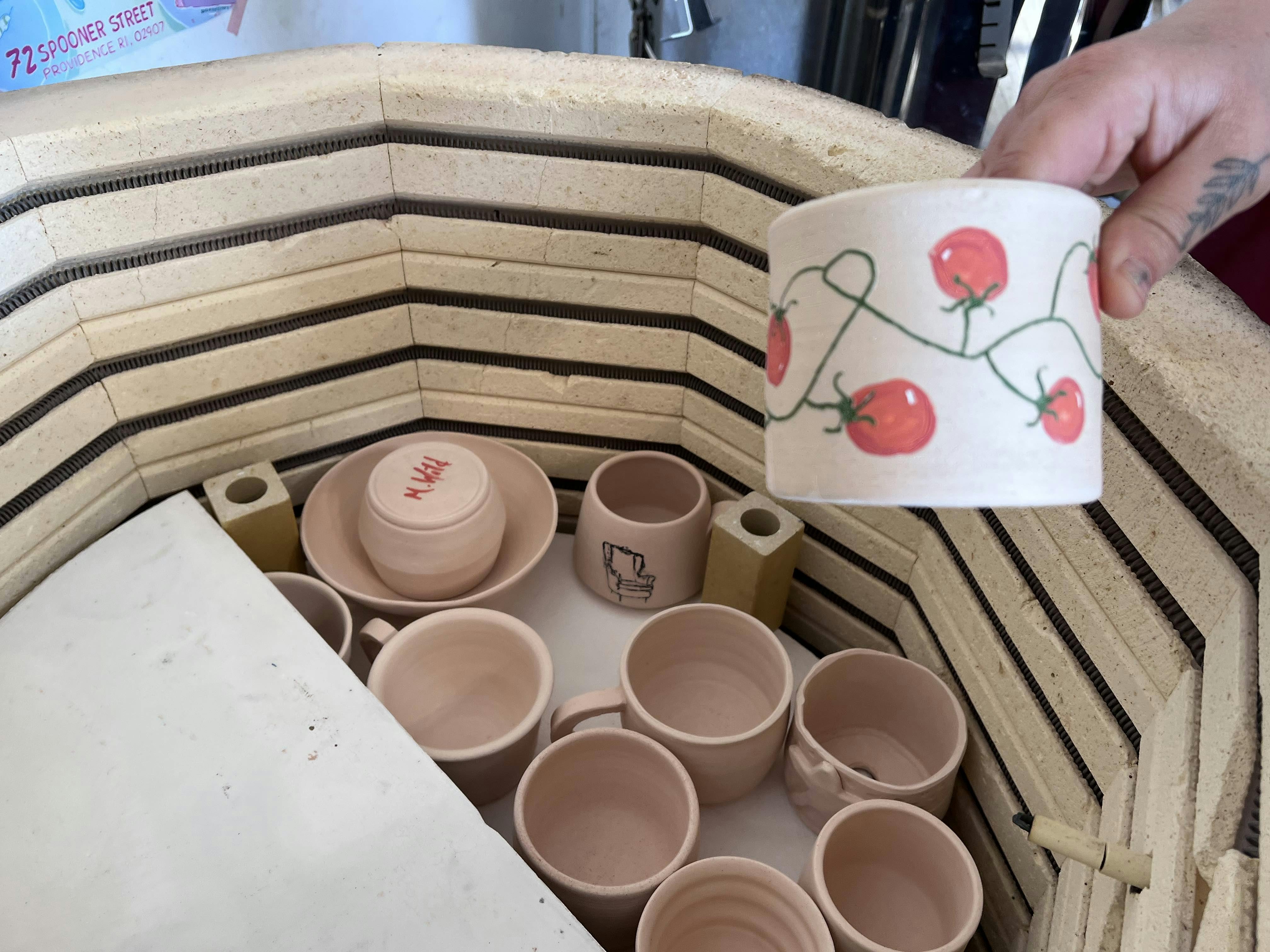 Located in a historic jewelry mill at 72 Spooner Street in South Elmwood, Anyhow Studio is a space where novices and experienced hands can throw pottery and make ceramic works. It features two impressive kilns, a number of pottery wheels, and plenty of workspace. Around the studio, shelves are lined with projects in process. Anyhow Studio is a unique model, offering classes and instruction while also featuring a member component, and even renting their kilns to artists.