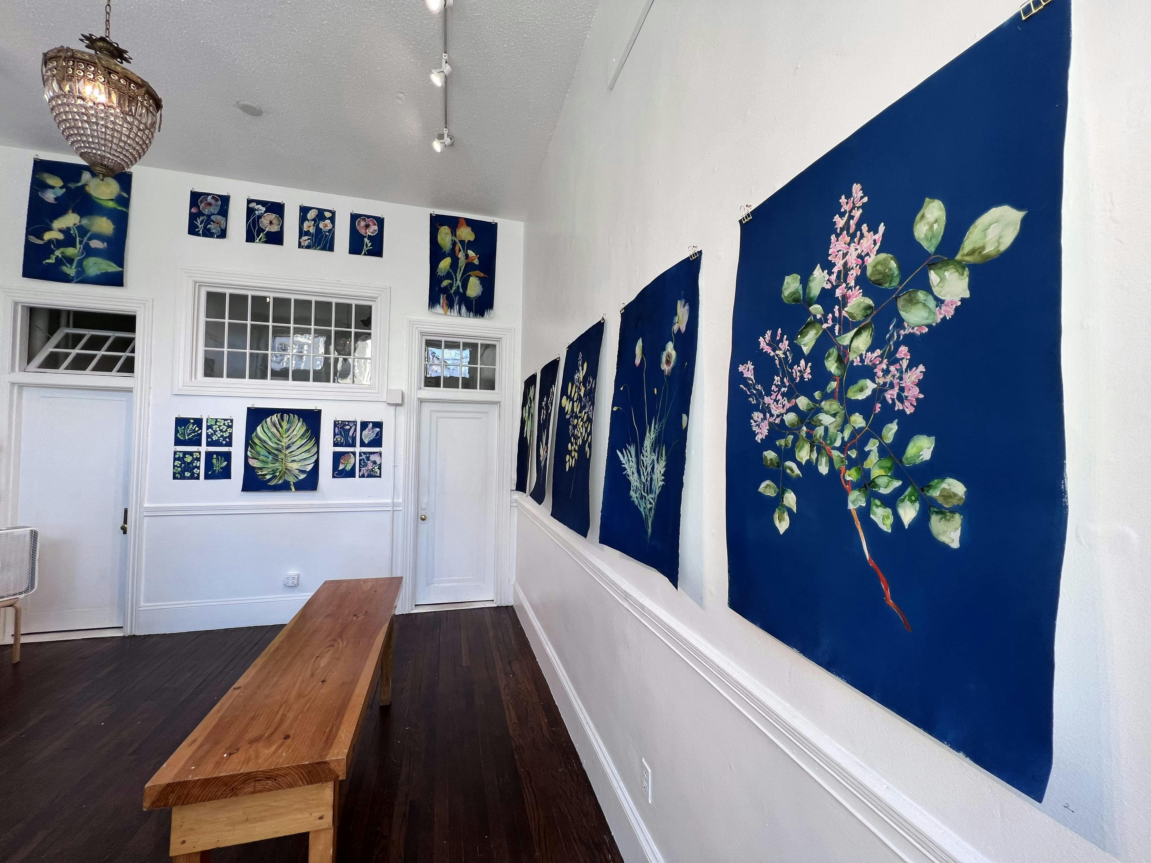 Describing her work and process, Windham says, “All my work begins with the act of collecting, and then composing with color. When my son was an infant I wasn’t able to make large collection-based sculptures and installations, so I switched to works on paper. Cyanotype is something I’ve always loved, and it allowed me to explore the idea of object-less collections. I printed the first batch through the nursery window. Inspired by hand-tinted photographs, I began hand painting my prints in vivid color to bring this Victorian process into today. There’s a joy that radiates through me when I am working on them, and I hope it shows.”