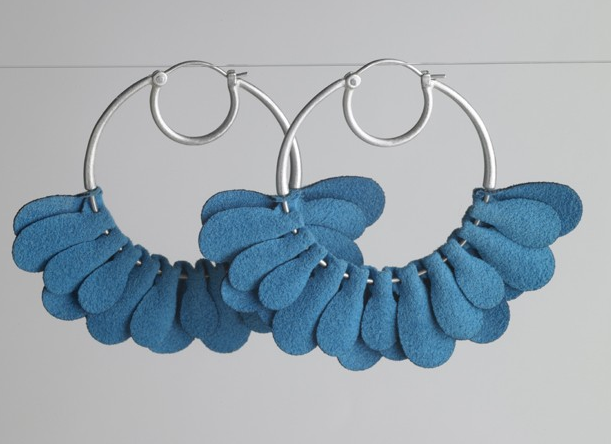 Check out Meghan Devinat, whose jewelry studio Studio Devinat combines disparate elements to make jewelry that is fun and bold. In colors like rich burgundy and cobalt paired with feminine designs, like flowers and tutu-like hoops, her jewelry is both striking and wearable.