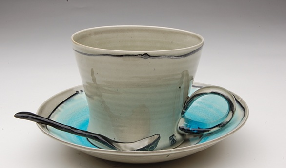 In addition to the alumni, a few students were selected to participate in the show—including Nicole Kowalski, who will graduate in 2012 with an MFA in Ceramics. Her pieces, like this perfectly accented coffee cup, are balanced and quirky, delicate and substantial.