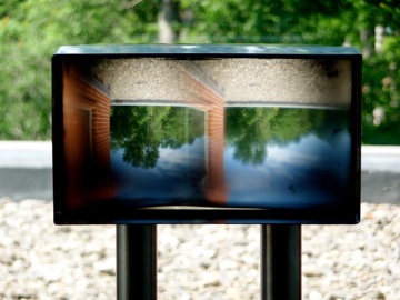 With optical lenses and Plexiglas, Swartz uses natural light to project images outside the building's windows onto a screen inside, unifying the internal and external spaces. The sculpture, Floor to Ceiling, uses electrical currents to create a magnetic field around two thin rods of stainless steel - one suspended from the ceiling and another balanced on the floor - demonstrating the strength of magnetic force in direct opposition to gravity.