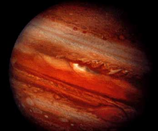 Next it’s time to look at Jupiter’s disk, the ball of the planet. Even a small telescope will reveal the more prominent dark bands/belts and lighter zones in Jupiter's cloud tops. Though the Great Red Spot (GRS), an almost four hundred year old storm, is not as red as it once was many years ago, it should be fairly easy to see if it has rotated into view2. A six-inch telescope or larger may be needed to catch a glimpse of it. Keep in mind that Jupiter rotates once in ten hours, making it possible to see the entire planet in one or two nights of observing.