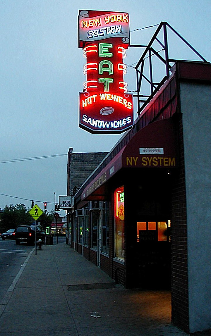 Anthony Stevens and his son Nicholas opened the original restaurant at 8 Olneyville Square, in 1946. Greek immigrants by way of Brooklyn, they'd moved to Rhode Island in the late 1930s and joined other family members running Original New York System on Smith Street. When the pair opened their own store in Olneyville, the menu consisted of just hot wieners (priced at a mere five cents apiece) and a few other lunch items. In 1953 they opened a new 24-hour operation in the present location, but by 1968 it was clear the early morning hours weren't profitable enough to make it worthwhile, so the hours were cut back. In 1981 a second location opened in Cranston and a third was added in North Providence in 2008. The Stevens family, now in its fourth generation, still operates all three locations.